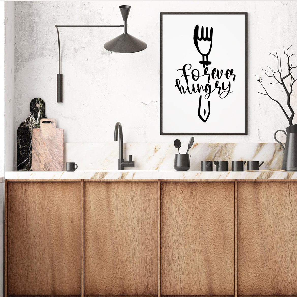 Für jede Naschkatze ist dieser Posterdruck mit der Aufschrift „Forever hungry“ genau das Richtige! Das Poster ist sowohl im Einzelnen, wie aber auch in Kombination mit weiteren Postern zusammen an einer Bilderwand ein bezauberndes Dekoelement für Dein Zuhause.